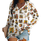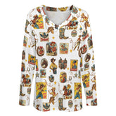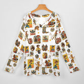 Baha Ranch Vintage Cowgirl Collage Western Print Long Sleeve Top